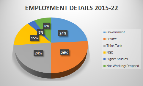 Out of 170 scholars, 156 are either employed or pursuing higher studies.